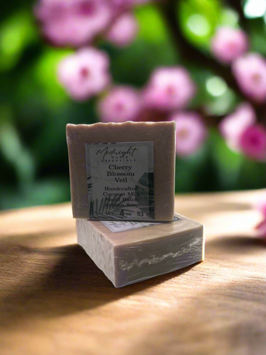 Indulge your skin in the luxurious embrace of our Cherry Blossom Aloe & Shea Artisan Soap, a handcrafted cold process soap designed to transform your daily routine into a blissful self-care ritual.