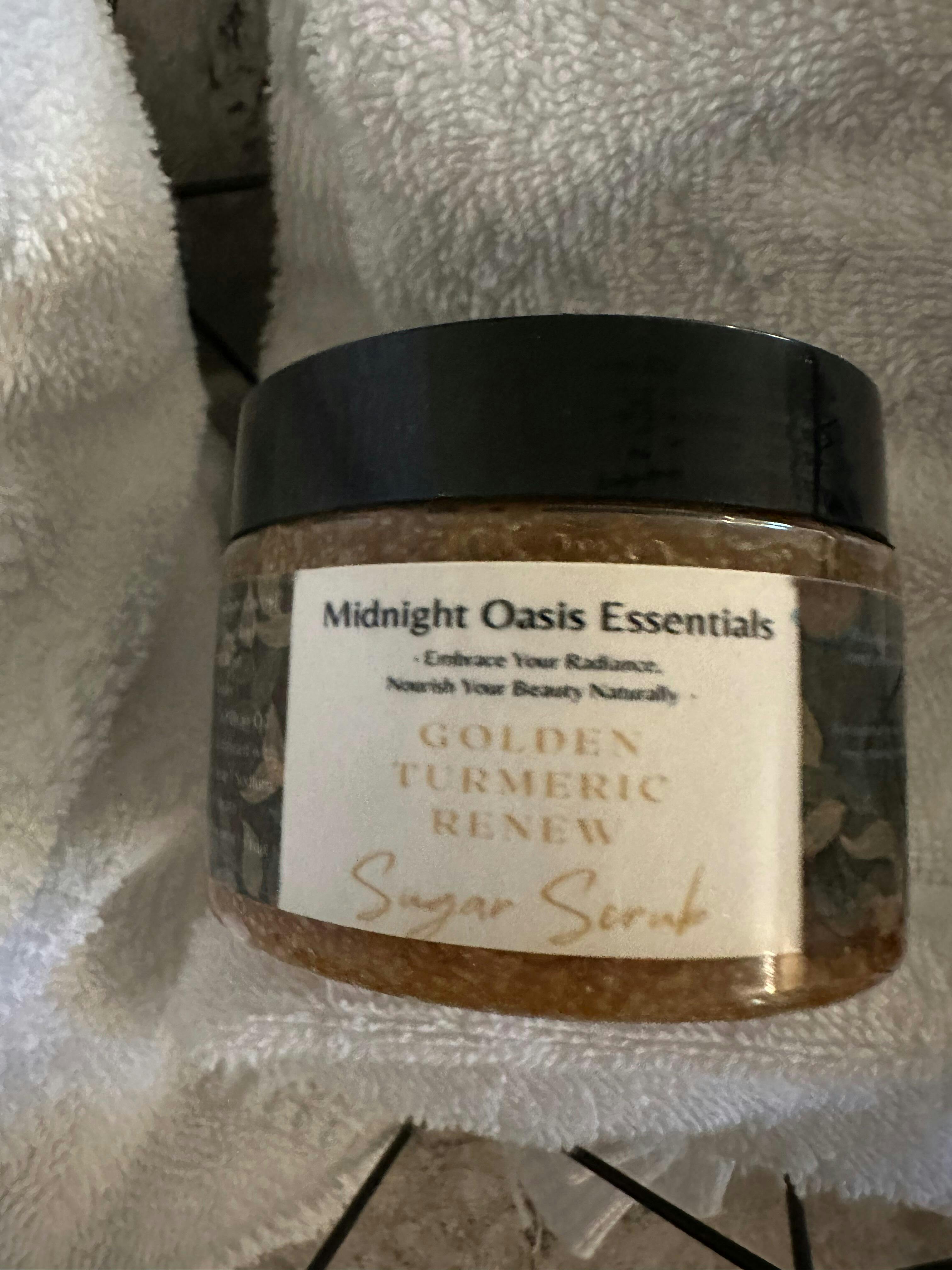 Elevate your skincare routine with the Golden Turmeric Renew Sugar Scrub, a luxurious blend of natural exfoliants, botanical oils, and gentle cleansing ingredients designed to leave skin feeling soft, smooth, and radiant.